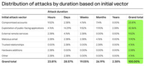 Le rapport révèle également que les attaques par ransomware les plus longues ont été initiées en exploitant des applications grand public, un peu plus de 2 % d’entre elles ayant duré un an ou plus.